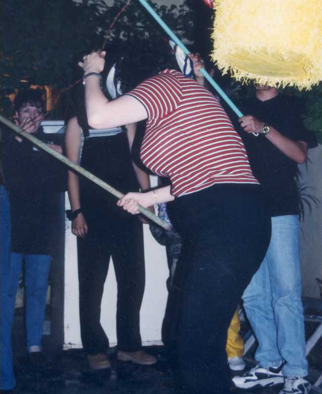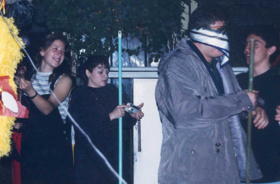 Un cumpleaños en 99 con una piñata y en este momento Melle fue preparado para golpear la